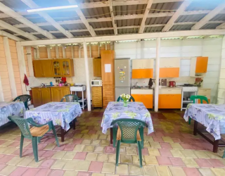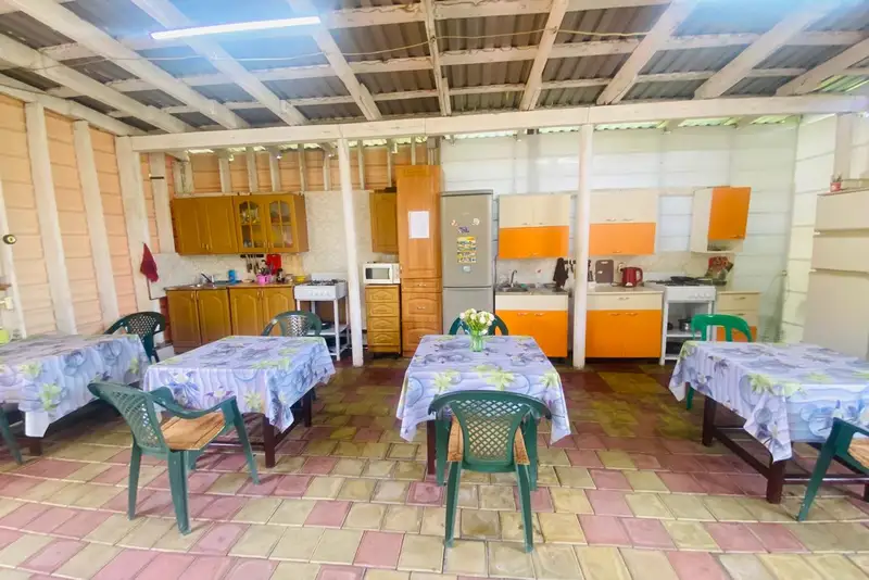На территории гостевого дома оборудована кухня для самостоятельного приготовления пищи, есть бассейн, зона отдыха и мангальная зона. Гостям